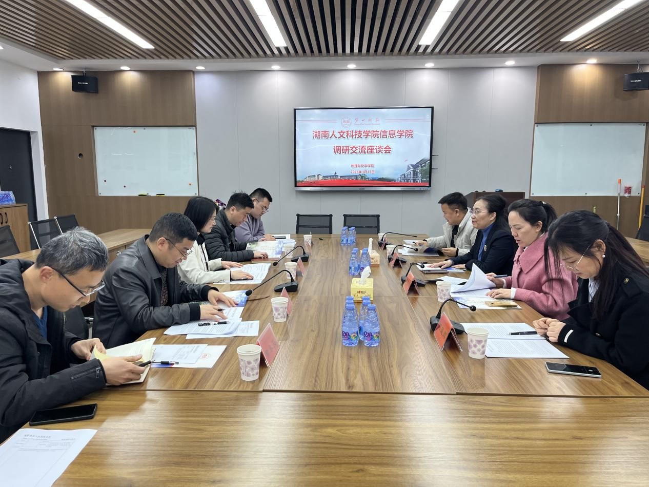 的发展历程、办学特色及近年来在学科建设、教学科研等方面取得的成绩。谢四连院长也分享了湖南人文科技学院信息学院的基本情况和办学经验。双方围绕物理学专业建设、人才培养模式创新、实验室建设与管理等议题展开了深入探讨,交流了各自在教学管理、科研合作及实践教学方面的经验与做法。